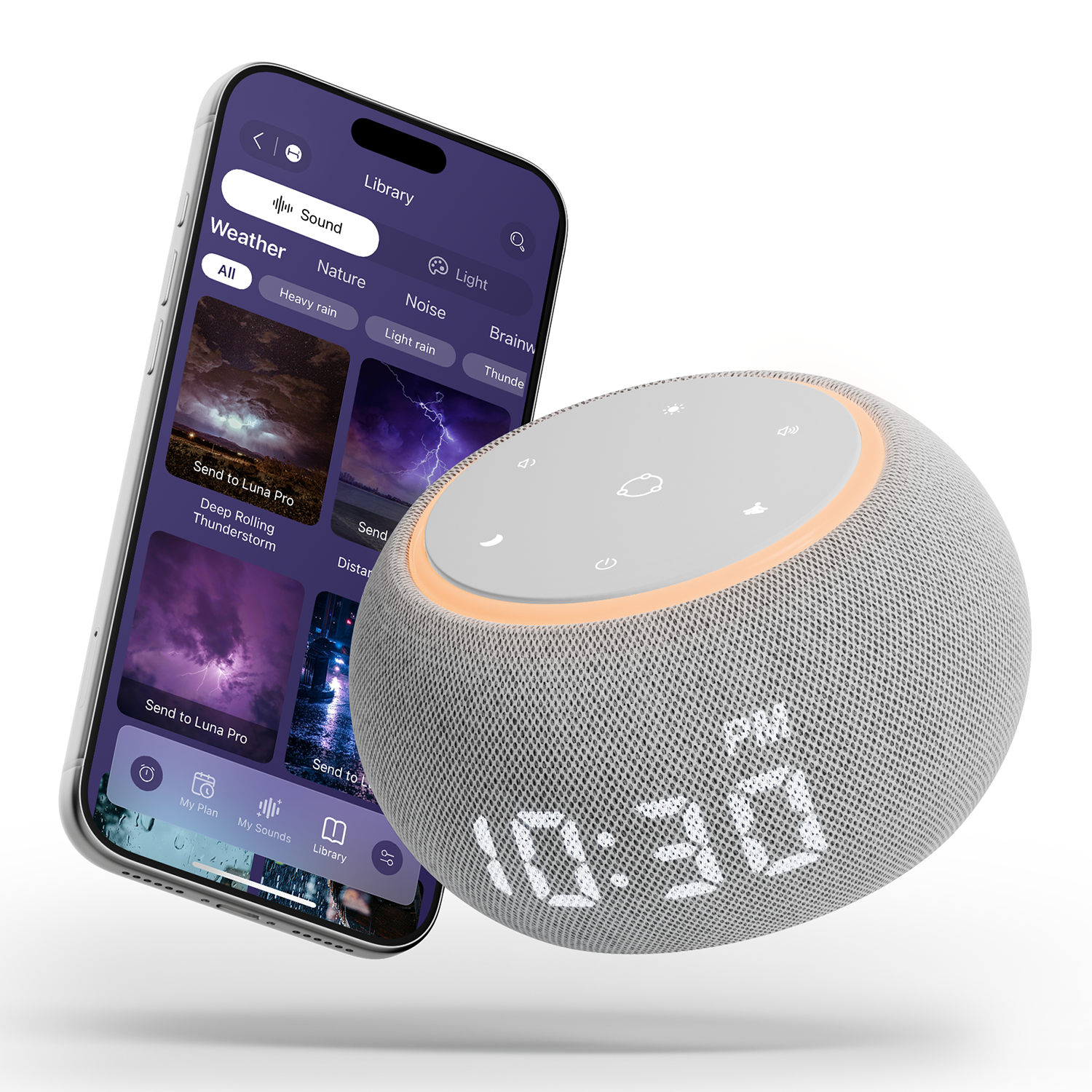 Up to 9 favorite sounds per button for personalized relaxation.