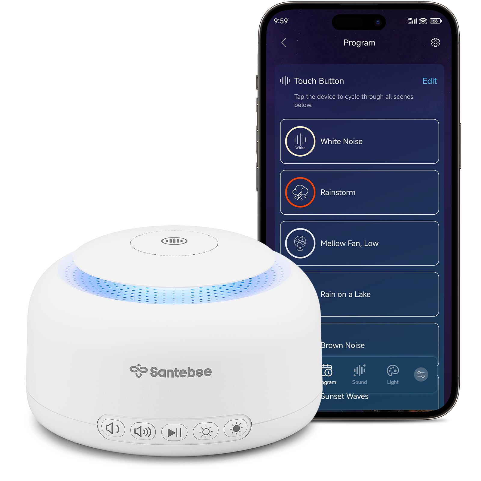 Control sound machine via buttons after initial APP setup.